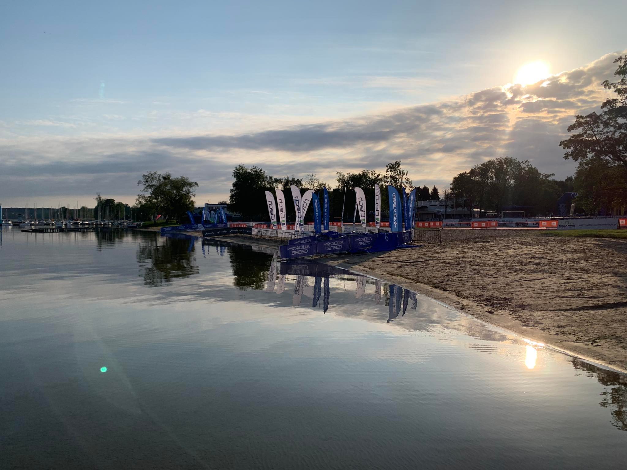 No nic rozłożyliśmy się cudownie jak kupa w lesie na runie i ruszyliśmy przywdziać pianki wszak czarny wyszczupla a my już średnio każdy po 38,9 lat więc na co czekać? Na brzegu nie bałem się jak zobaczyłem pamelkę…w rękach ratowniczki :D. Start to klasyczny rolling – jednak z kadencją mniejszą niż 5s więc na początku było ciasno, mokro i…żabkarzy full mocny. Uwielbia te ławy pełnej szerokości żabek przed mną. Ja na początku swojej przygody uczestnictwa w takich eventach ustawiałem się po prostu na końcu stawki. Mierzyłem siły na zamiary. No nic bojka uno, bojka due i prosta na pełnej do białej bramki. Powiem szczerze, że ciemne bojki nie pomagają w nawigowaniu – a były ciemne i mi ciężko było obrać kierunek, ech.