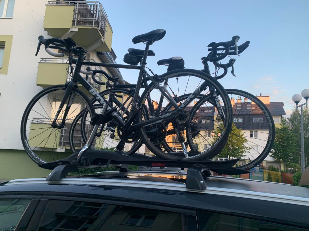Zjadamy kilometry jak szczerbaty suchary. Galaxy leci jak sokół milenium. Na dachu 3 szosy. Wszystkie 3 moje obecne lub byłe rowery żyłka handlarza pozostała po mamie się gra się ma – tak trzeba żyć 😀 .