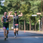 Droga rowerowa pełna uroku, cienia i miłych wspomnień. Charzyki, Funka, Brusy i nawrotka w okolicy Małe (nie) Sworne Gacie :D. To tam człowiek jeździł na zielone szkoły, tam harcerze czymają zaPałki przy ognisku to tam poznałem swoja pierwszą finke – zimną. Nic to otarłem łzy wspomnień i kontynuowałem końcówkę roweru. Przed zejściem nie wiem co myślałem ale wbiegałem w T2 z jednym butem na nodze drugi pozostał wpięty w pedał. Poleciałem tak jak stałem. Zmiana obuwia i wylot w dwóch równych na MEGA urokliwą trasę biegową wzdłuż linii brzegowej. Drzewa cień i chłodek, jeszcze od jeziora więc nie robiłem nic tylko kontrolowałem swoje tempo. Było założenie i starałem je realizować. Słowo starałem się i realizować – jest tu kluczowe :D. Na mecie jakiś luj wbił mnie się w obiektyw jeszcze….ech Ci celebryci motyla noga.