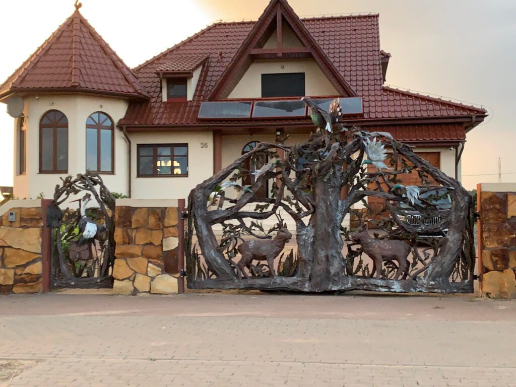 Zapakowałem madżur i wio na koń do dom. Po drodze przykuła uwagę mą kuta brama. Gdzieś w cabanie zadzwoniło mi : Faber będziesz wjeżdżał do Cekcyna zobaczysz pewne cudo u gościa na bramie…i k zobaczyłem i zrozumiałem. Sami zobaczcie. Ja wiem każdy ma swoją wrażliwość i o gustach się dyskusu nie prowadzi ale…oczy bolo i krwawio.